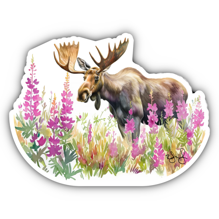 Watercolor Moose in Fireweed Sticker